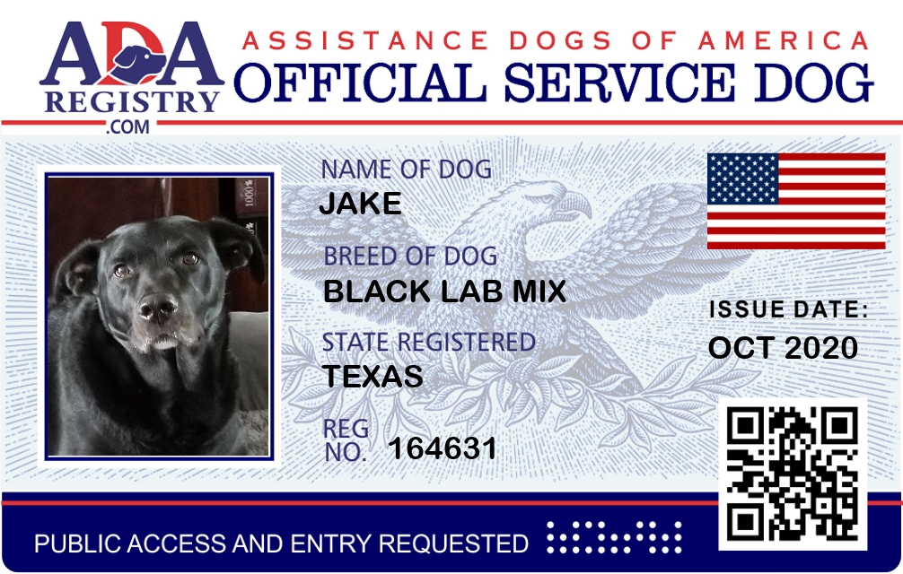Service Dog Registration for Jake