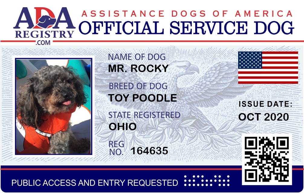 Service Dog Registration for Mr. Rocky