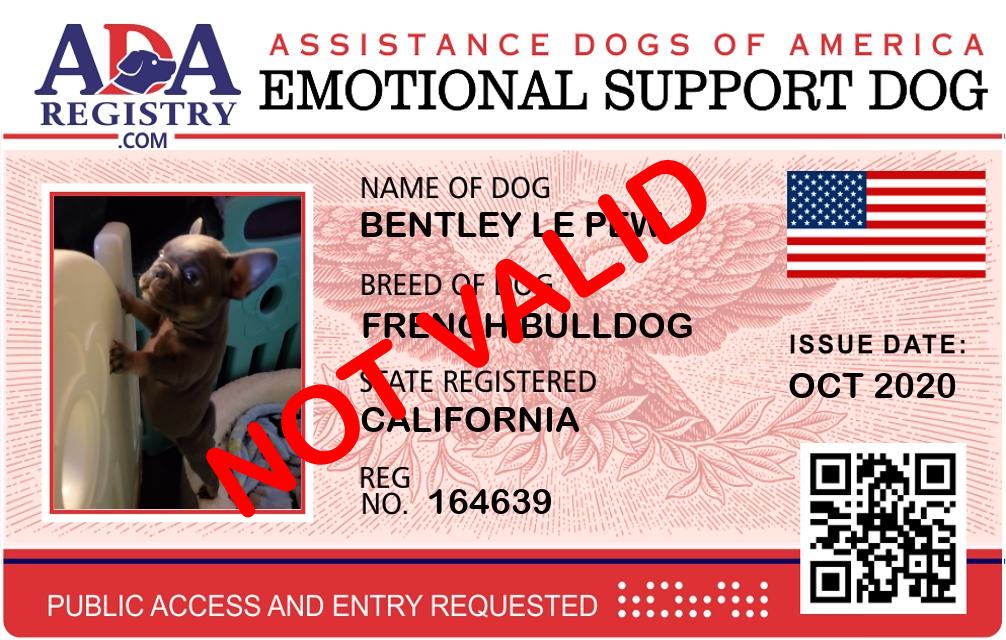 Emotional Support Dog Registration for BENTLEY LE PEW