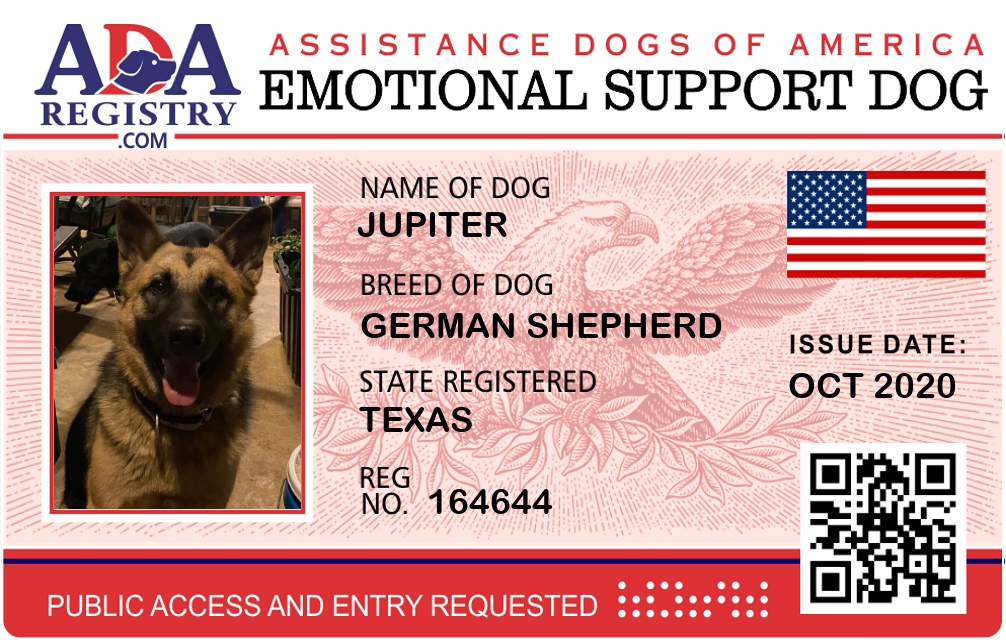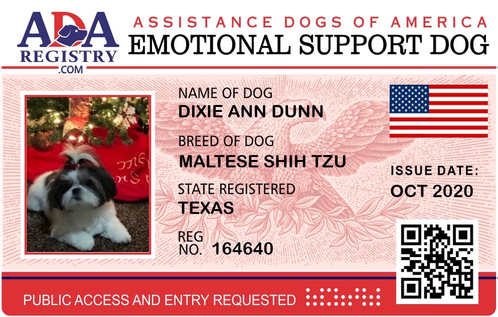 Emotional Support Dog Registration for Dixie ann dunn