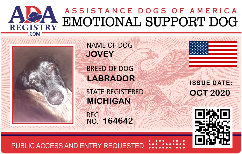 Emotional Support Dog Registration for Jovey