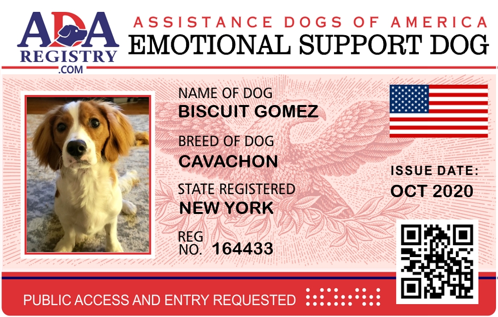 Emotional Support Dog Registration for Biscuit Gomez