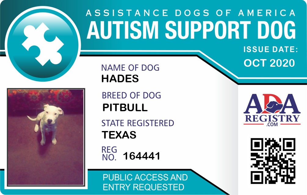 Autism Assistance Dog Registration for Hades