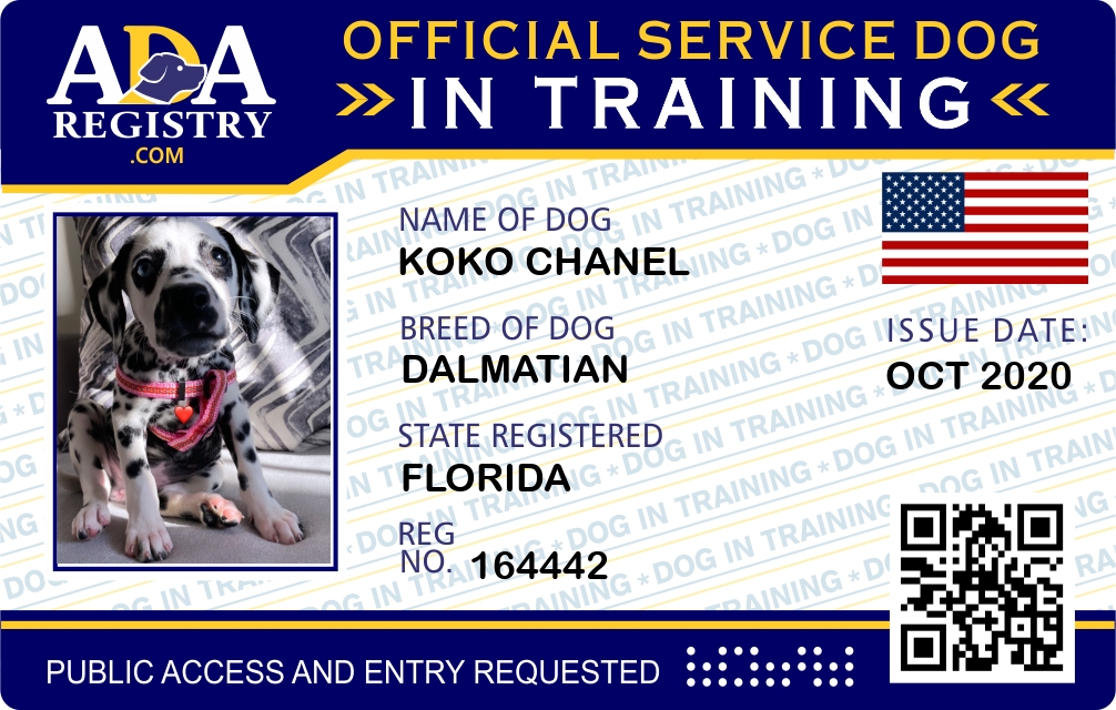 Service Dog In Training Registration for Koko Chanel