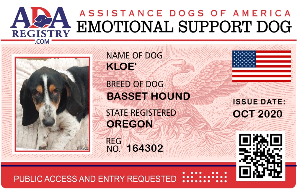 Emotional Support Dog Registration for Kloe'