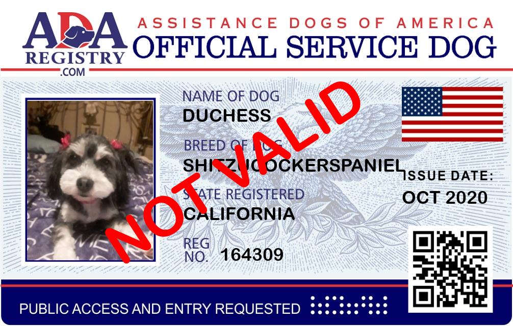 Service Dog Registration for Duchess