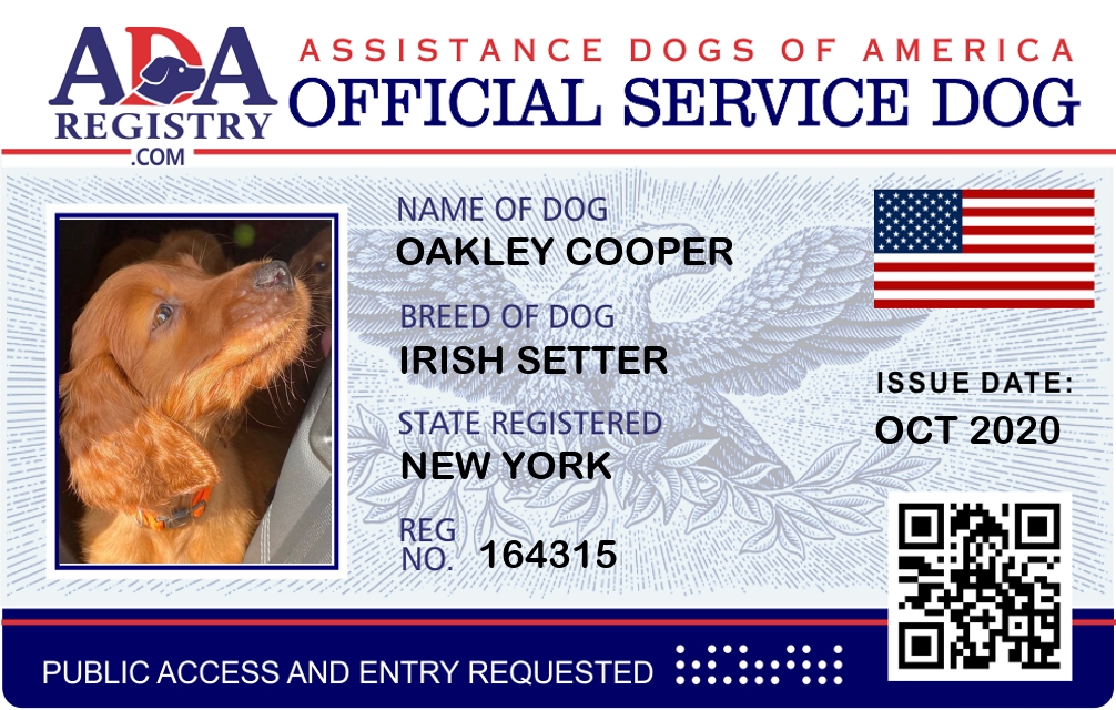 Service Dog Registration for Oakley Cooper