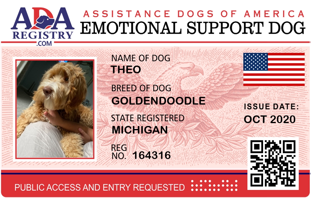 Emotional Support Dog Registration for Theo