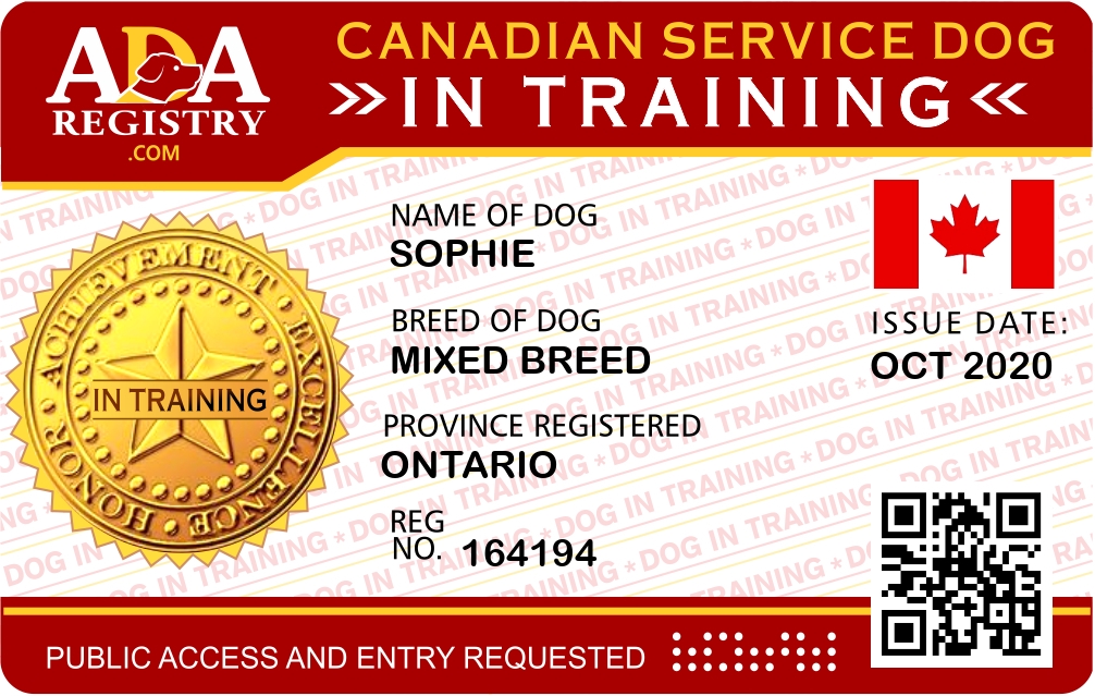 Service Dog In Training Registration for Sophie