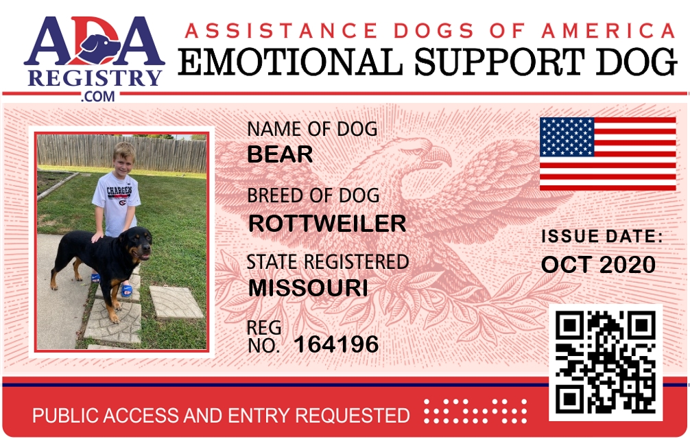 Emotional Support Dog Registration for Bear