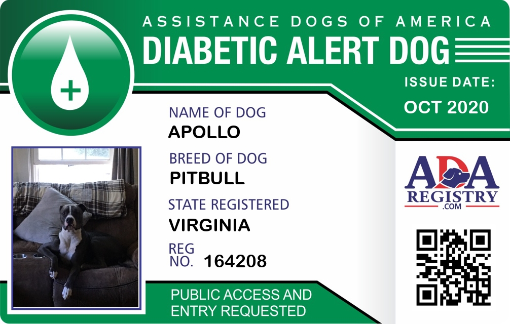 Diabetic Alert Dog Registration for Apollo