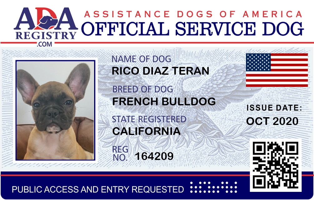 Service Dog Registration for Rico Diaz Teran