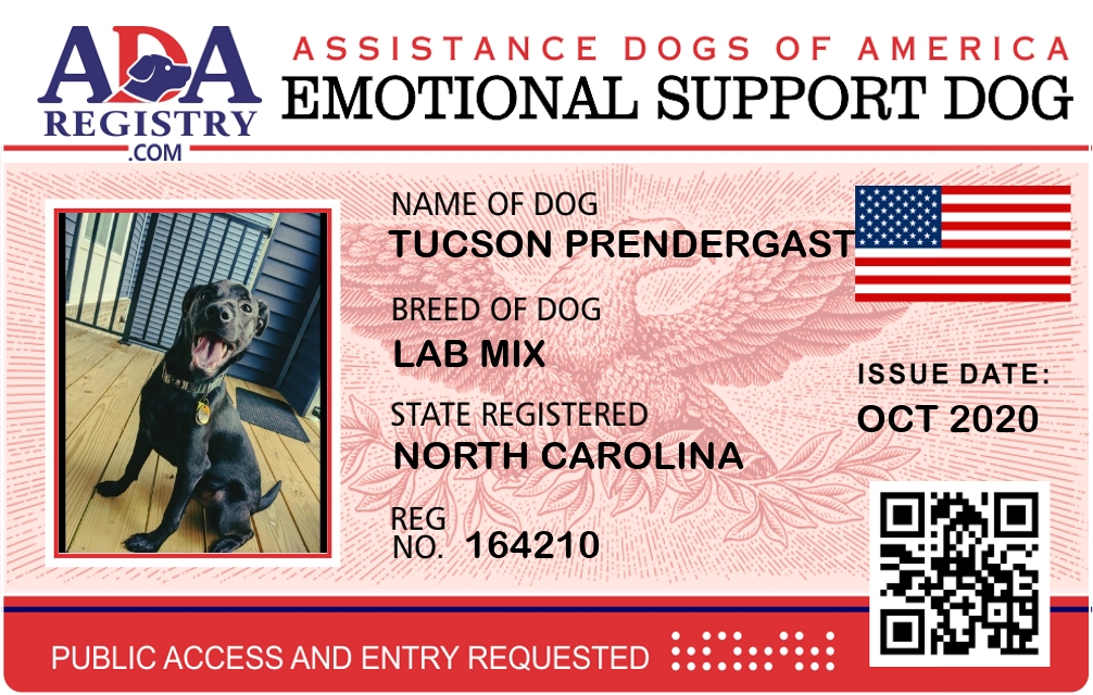 Emotional Support Dog Registration for Tucson Prendergast