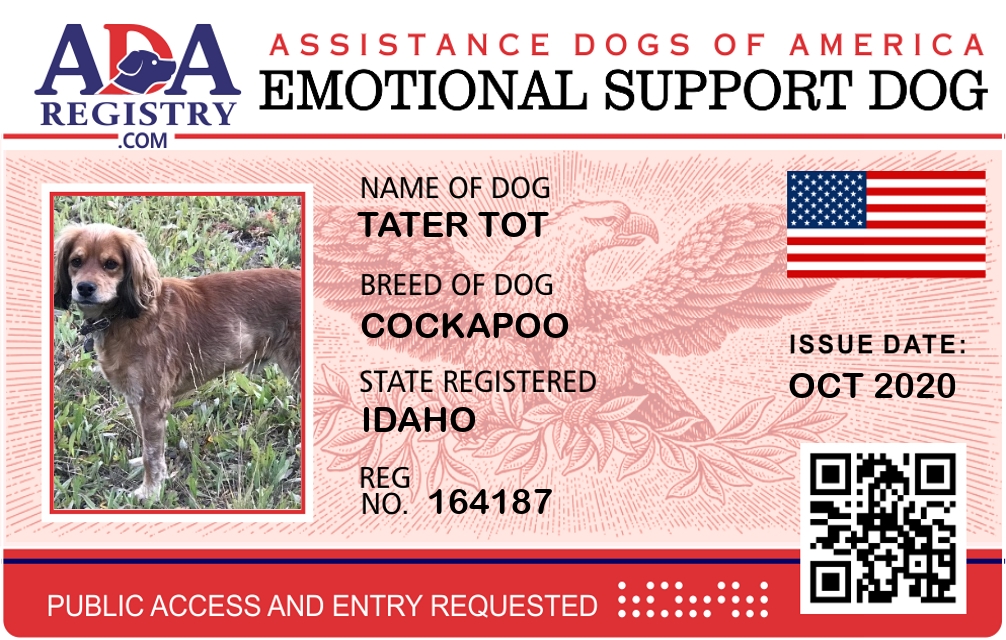 Emotional Support Dog Registration for Tater tot