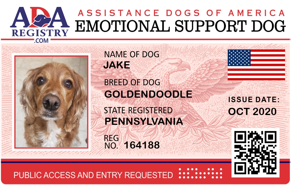 Emotional Support Dog Registration for Jake
