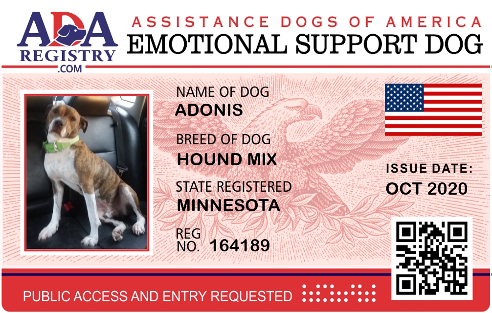 Emotional Support Dog Registration for Adonis