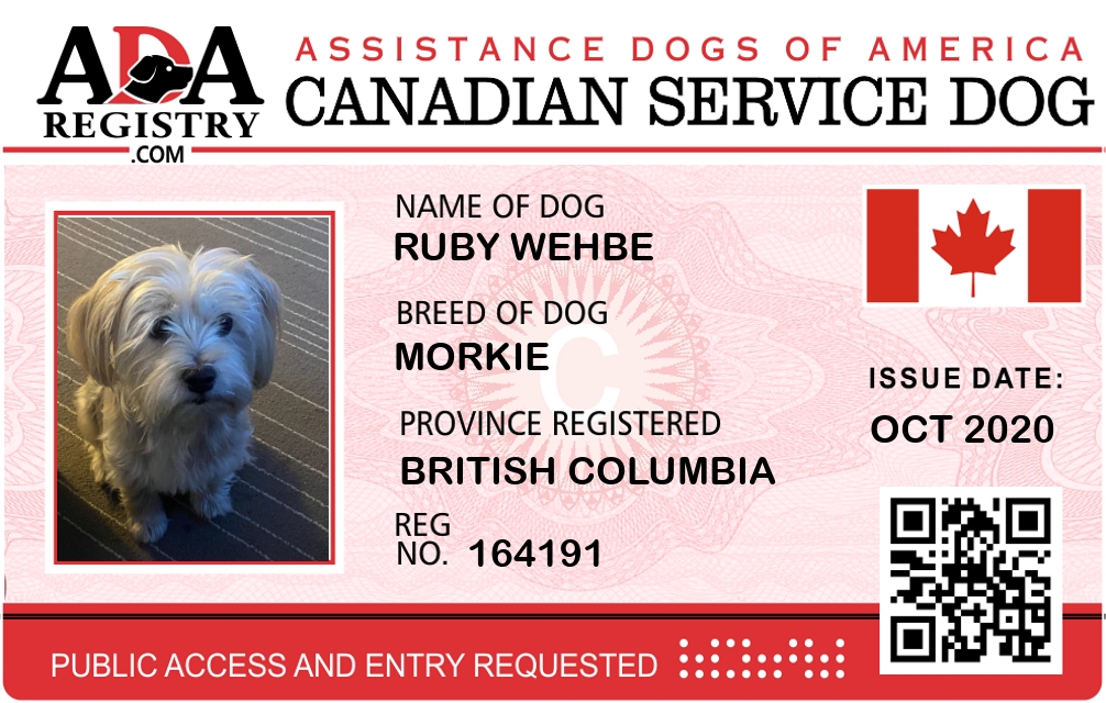 Service Dog Registration for Ruby Wehbe