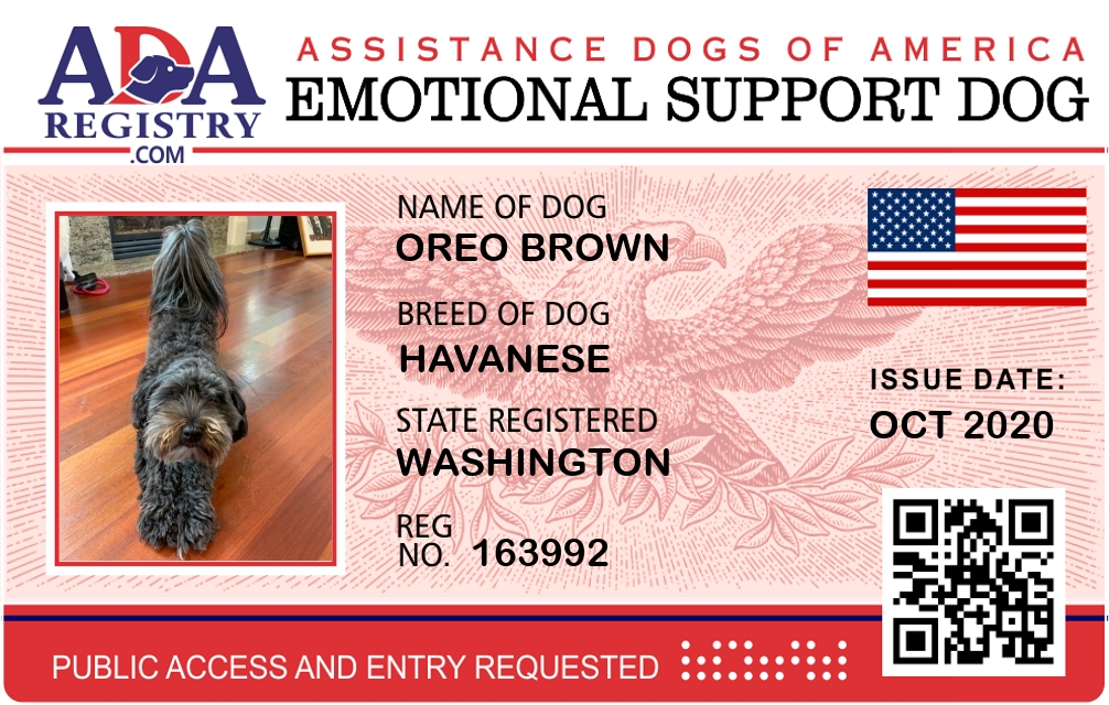 Emotional Support Dog Registration for Oreo Brown