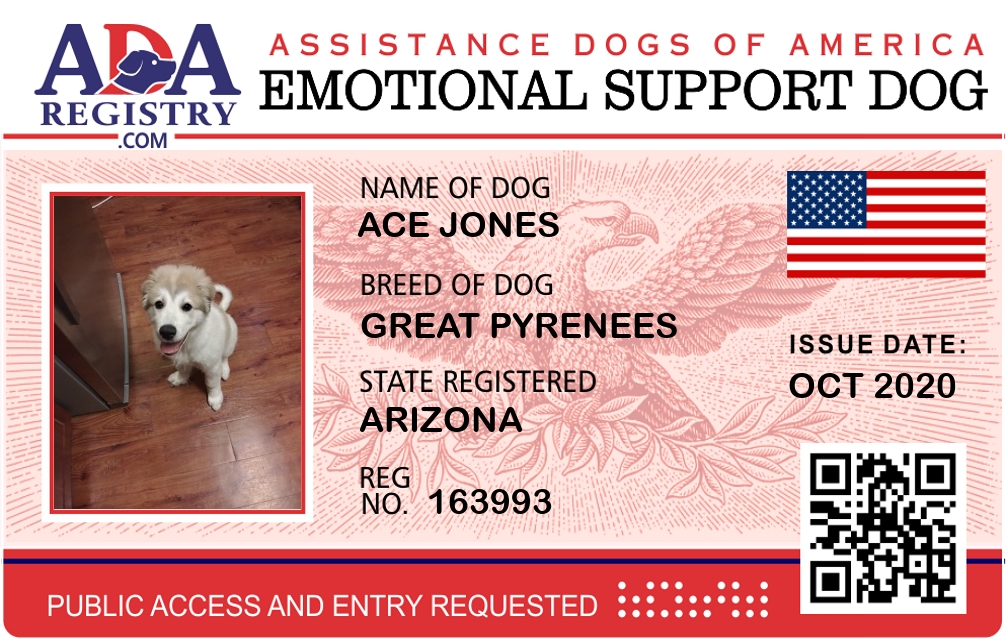 Emotional Support Dog Registration for Ace Jones