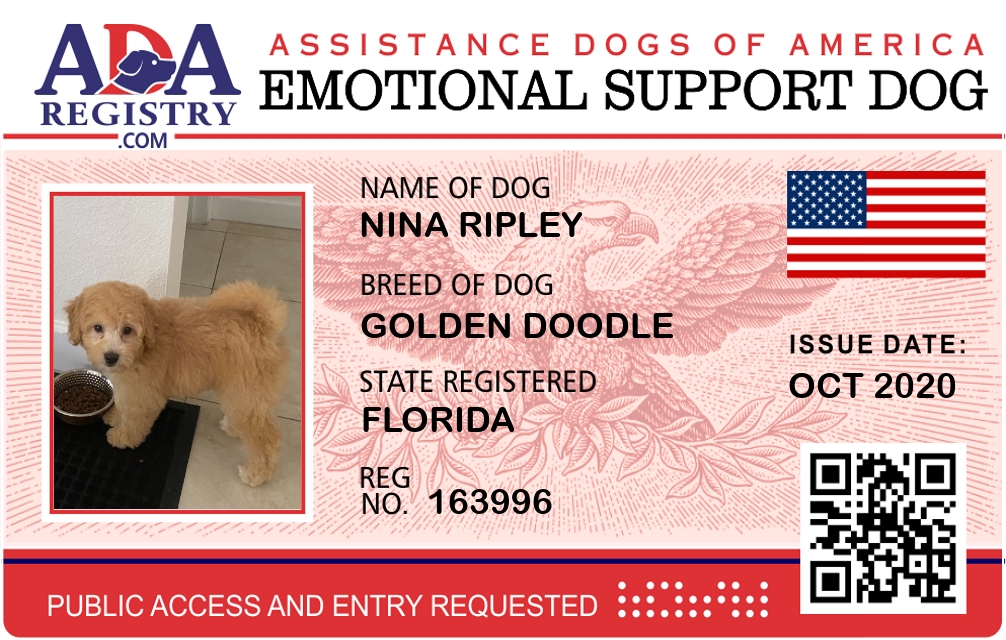 Emotional Support Dog Registration for Nina Ripley