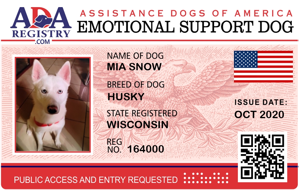 Emotional Support Dog Registration for Mia Snow