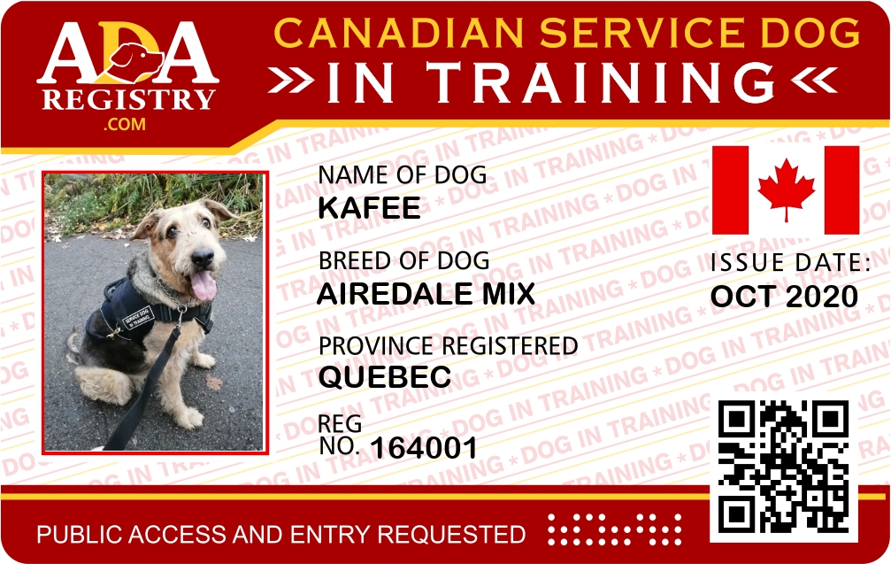 Service Dog In Training Registration for Kafee