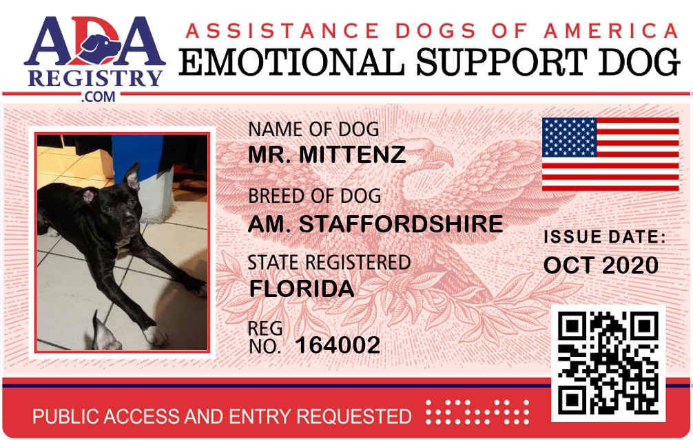 Emotional Support Dog Registration for Mr. Mittenz