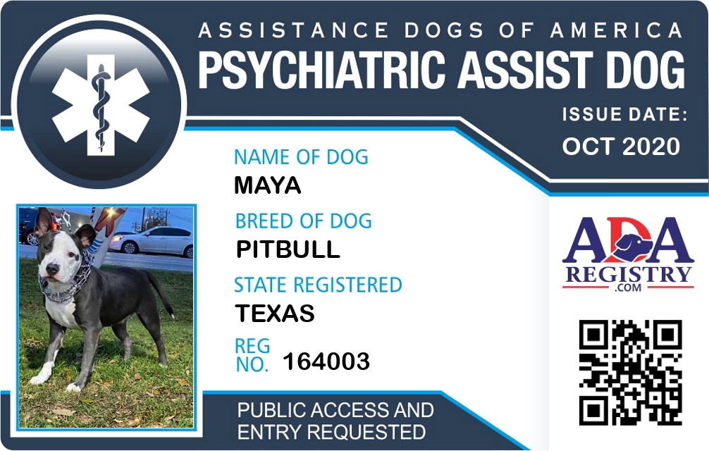 Psychiatric Service Dog Registration for Maya
