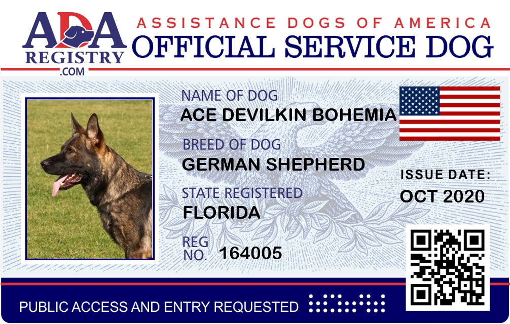 Service Dog Registration for ACE DEVILKIN BOHEMIA