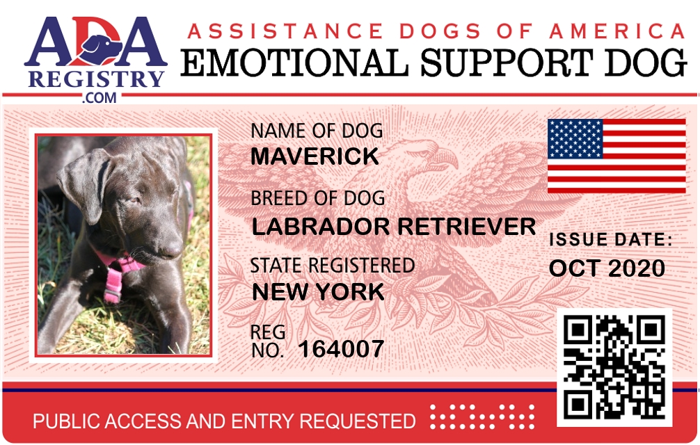 Emotional Support Dog Registration for Maverick