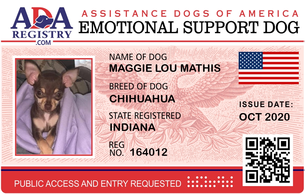 Emotional Support Dog Registration for Maggie Lou Mathis