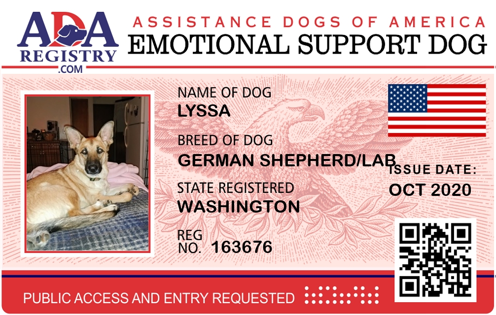 Emotional Support Dog Registration for Lyssa