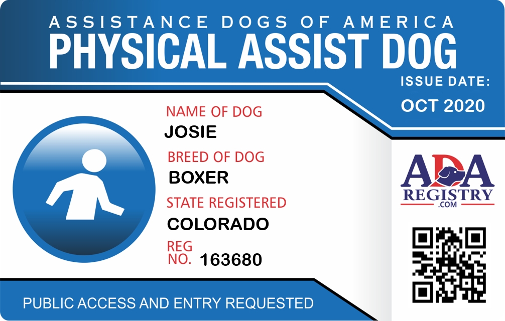 Physical Assistance Dog Registration for Josie