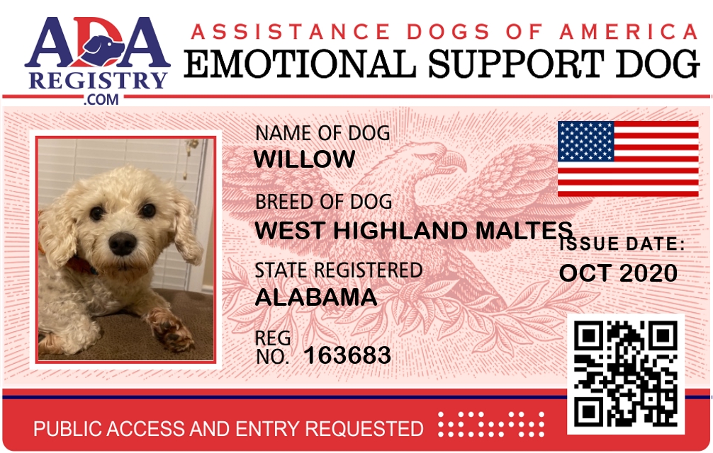 Emotional Support Dog Registration for Willow