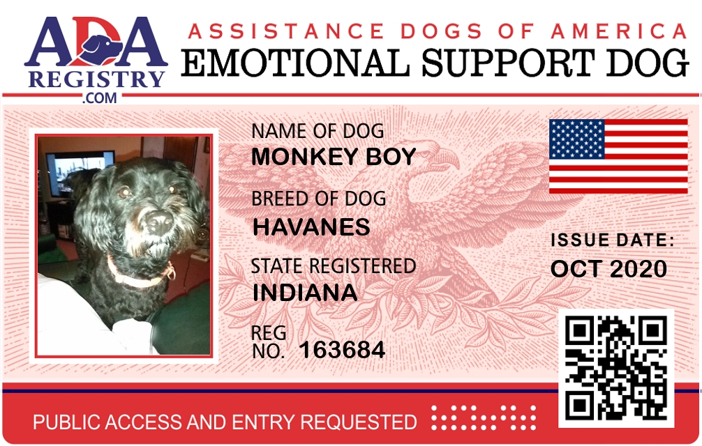 Emotional Support Dog Registration for Monkey Boy