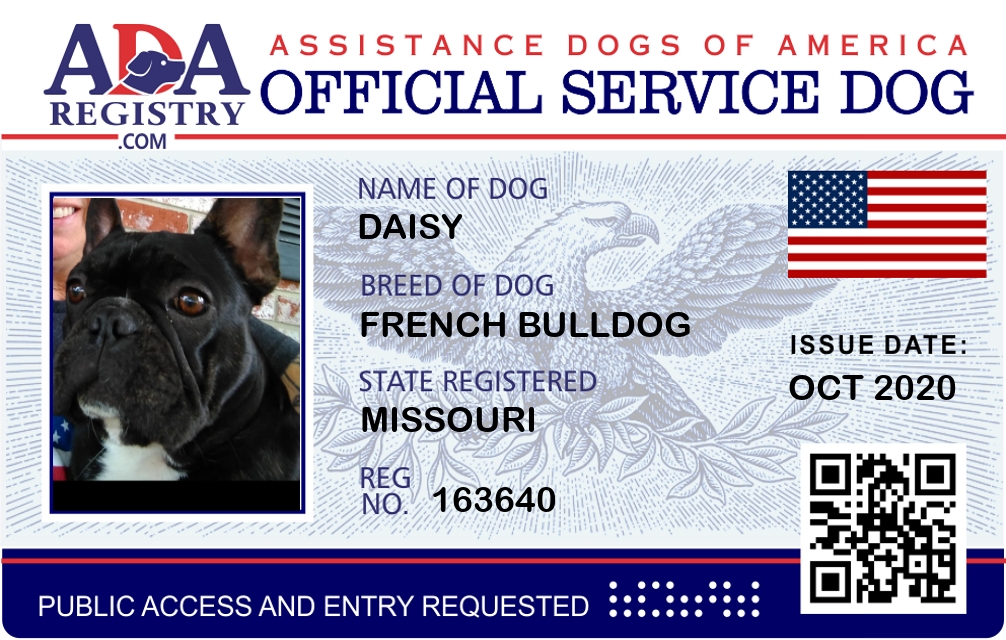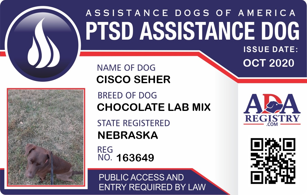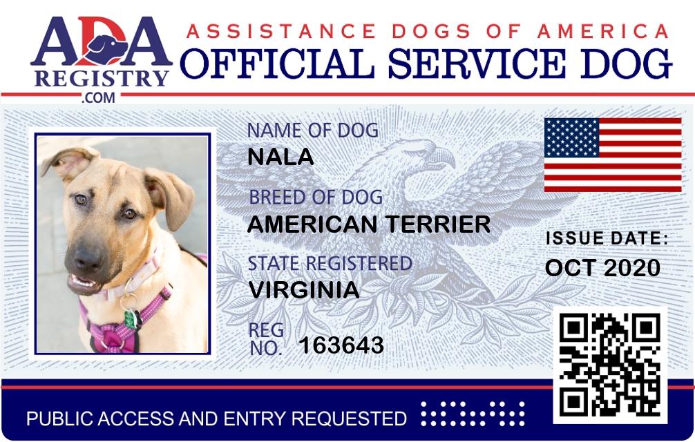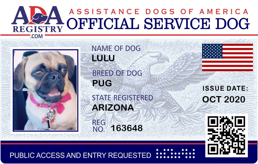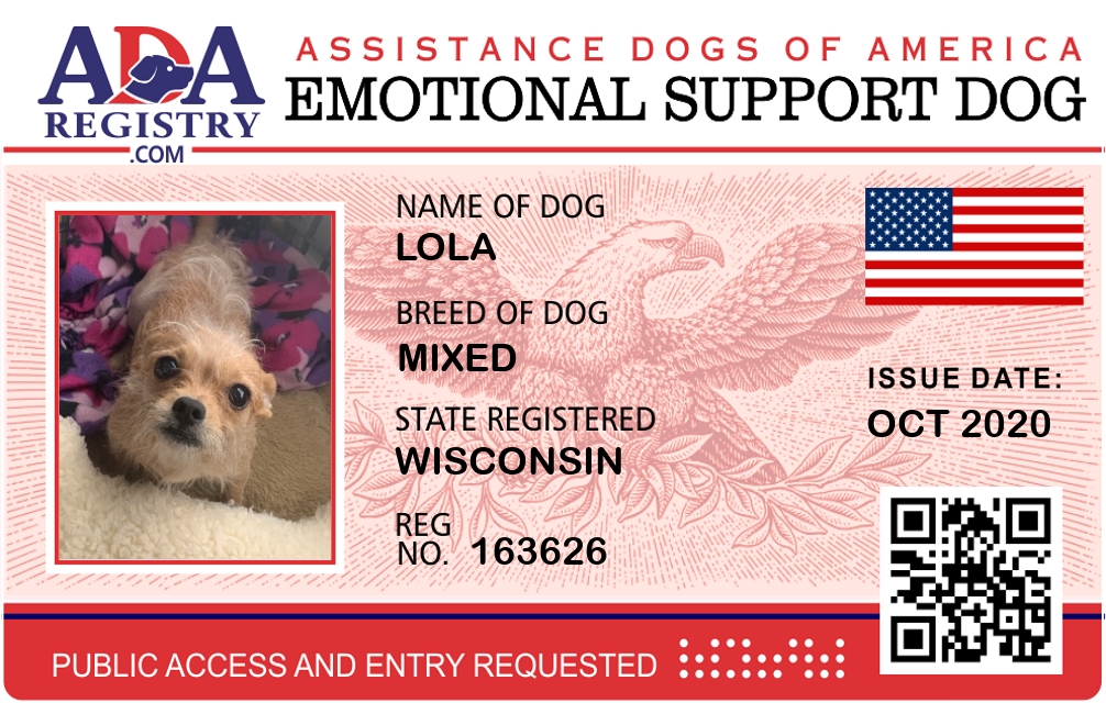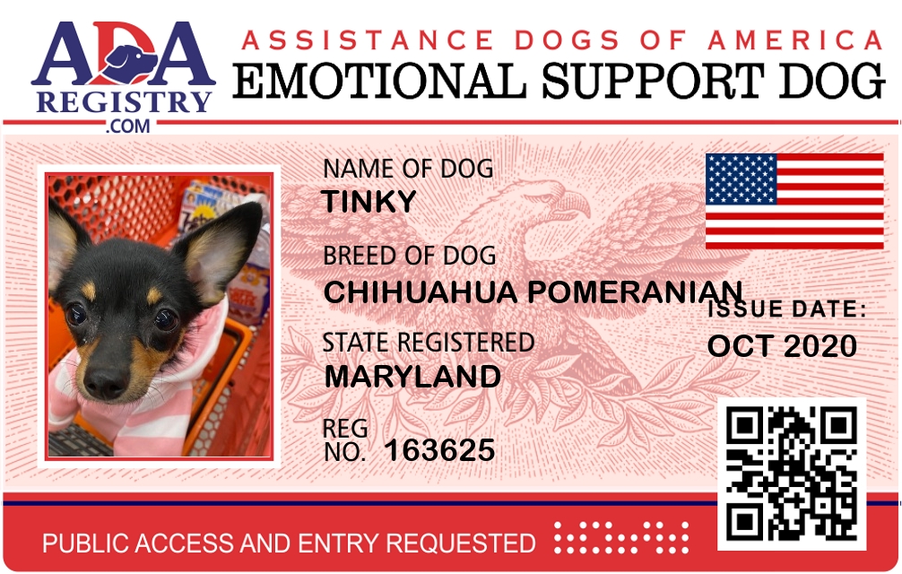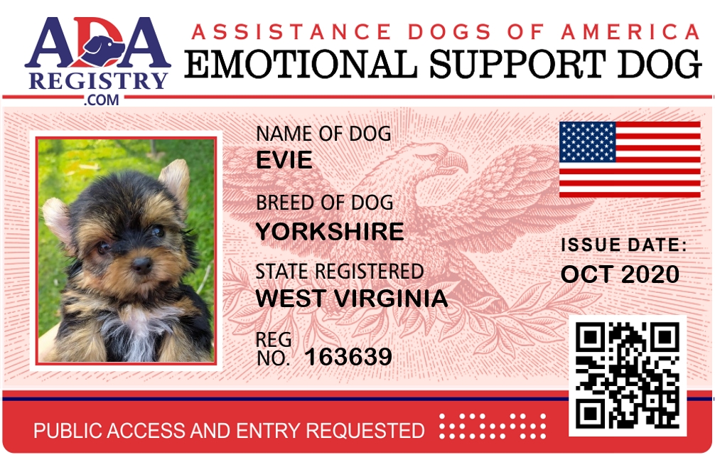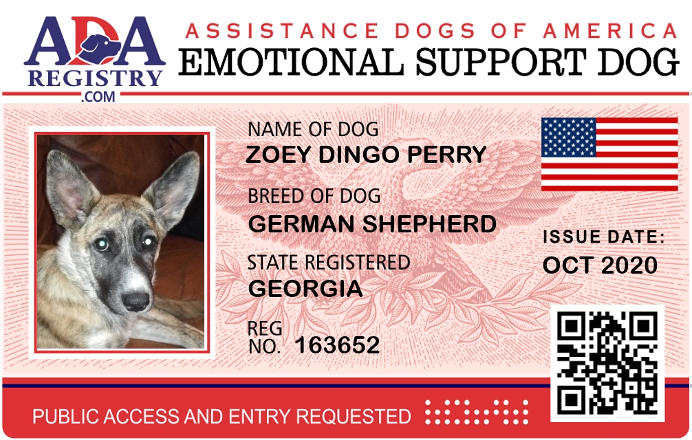 Emotional Support Dog Registration for Zoey Dingo Perry
