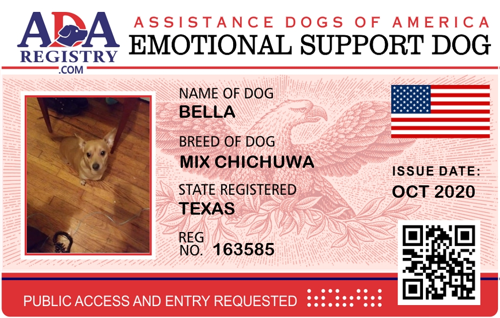 Emotional Support Dog Registration for Bella ann