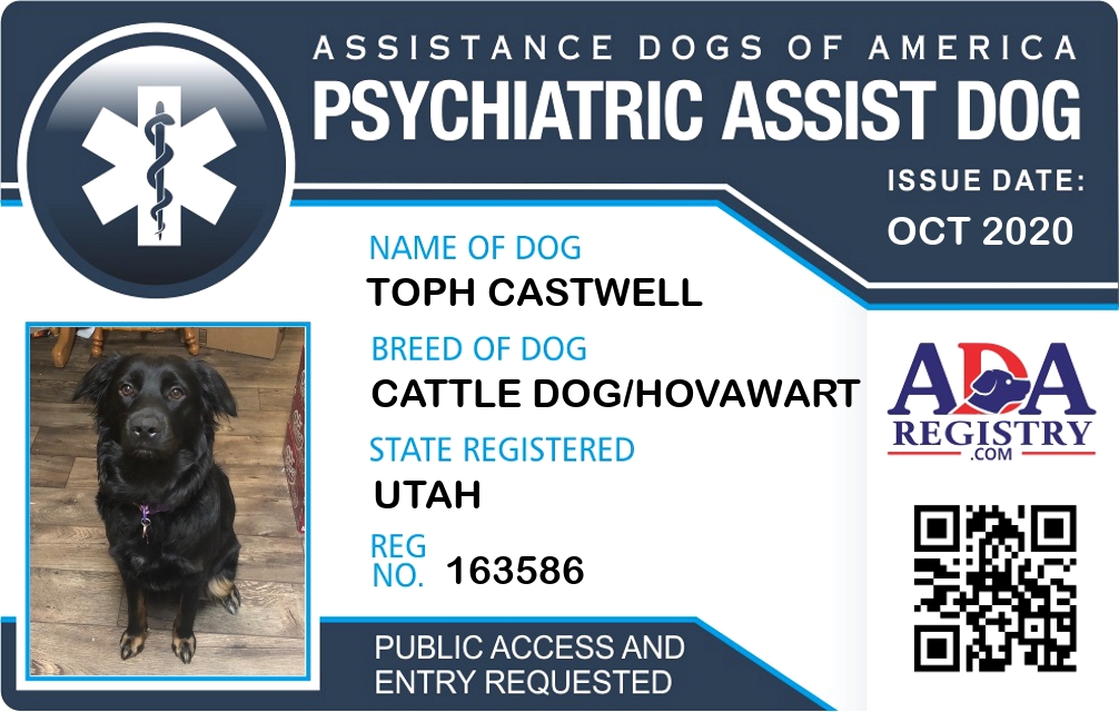 Psychiatric Service Dog Registration for Toph Castwell