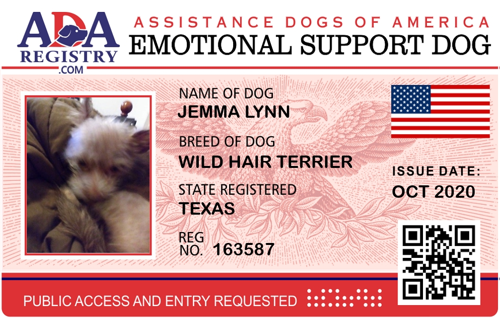 Emotional Support Dog Registration for Jemma Lynn