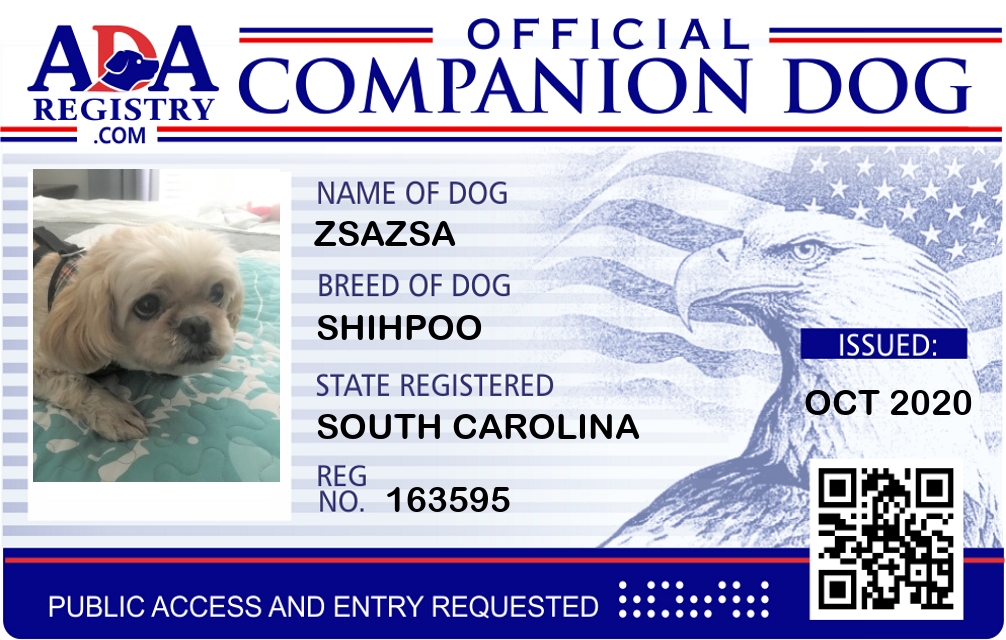 Emotional Support Dog Registration for Bailey Zuzu