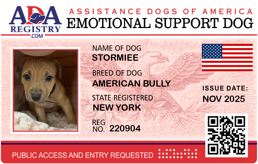 Emotional Support Dog Registration for Stormiee