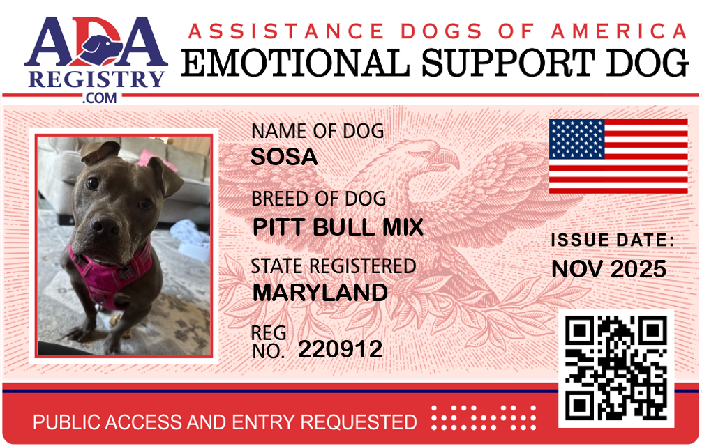 Emotional Support Dog Registration for Sosa
