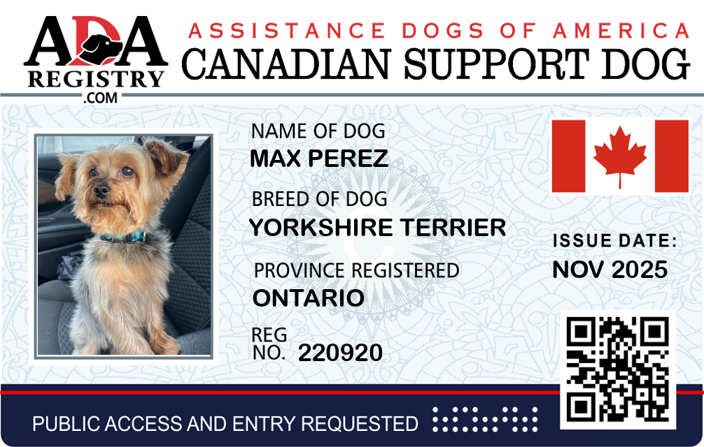 Emotional Support Dog Registration for Max Perez
