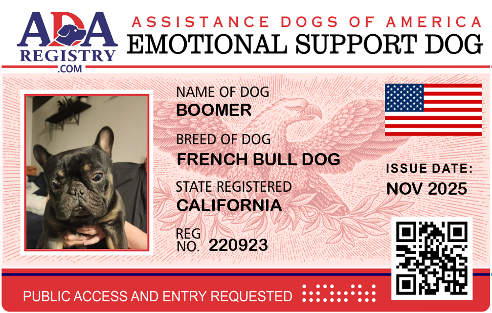 Emotional Support Dog Registration for Boomer
