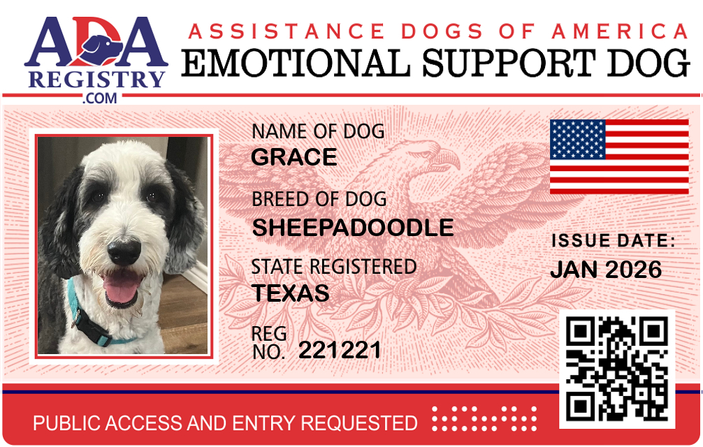 PTSD Assistance Dog Registration for Lady Noelle Adams