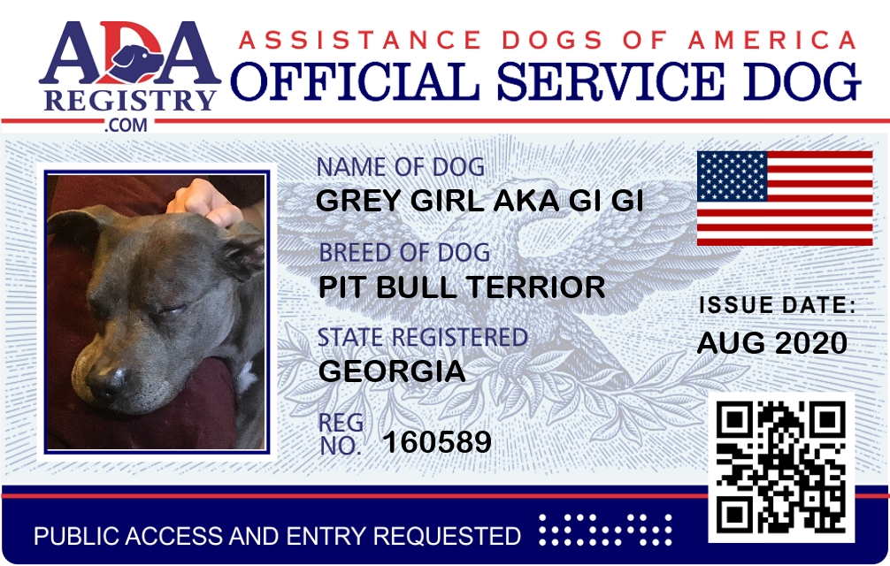 Service Dog Registration for Grey Girl Aka Gi Gi