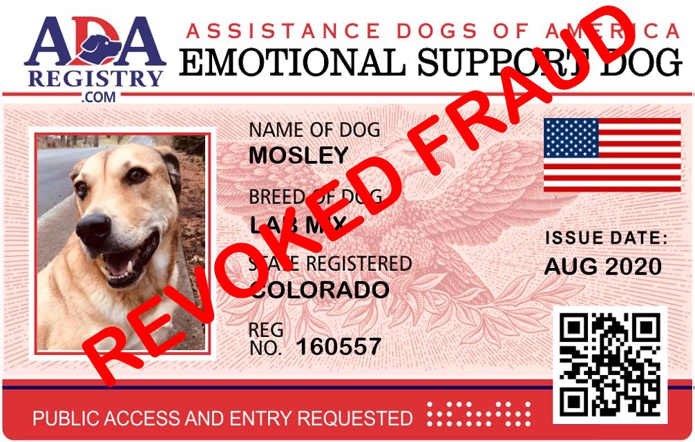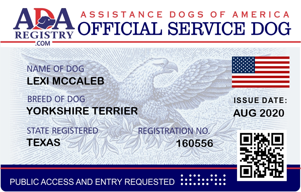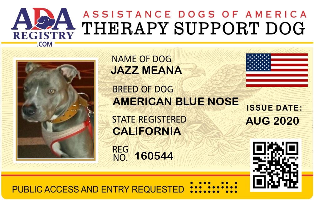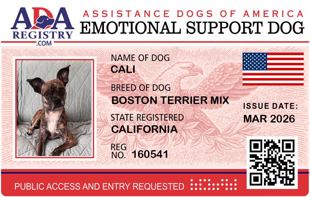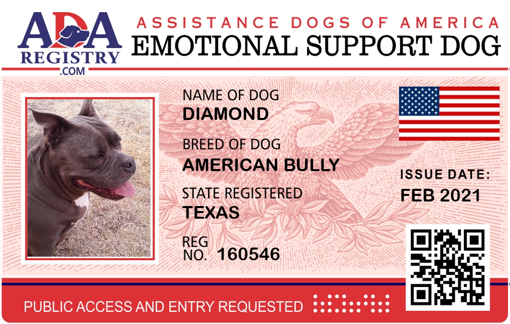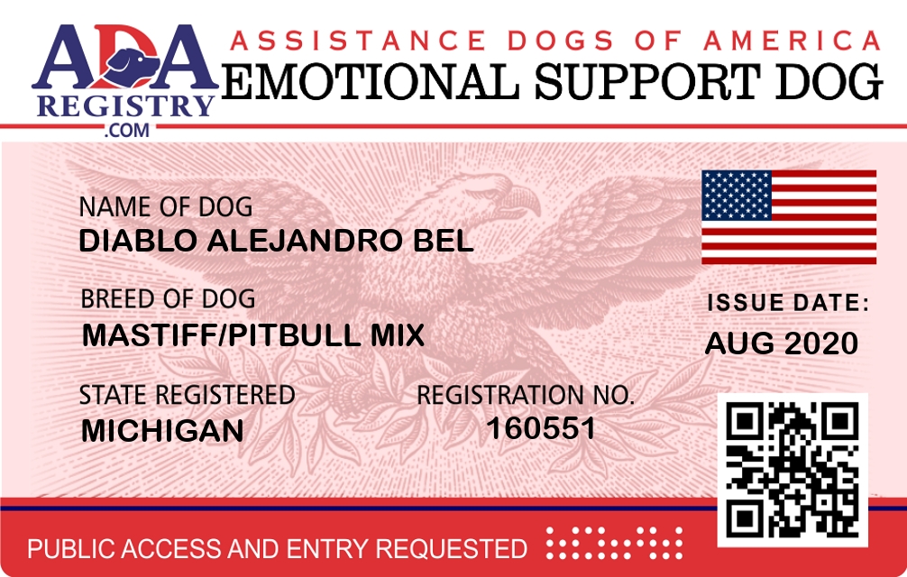 Emotional Support Dog Registration for Diablo Alejandro Bel