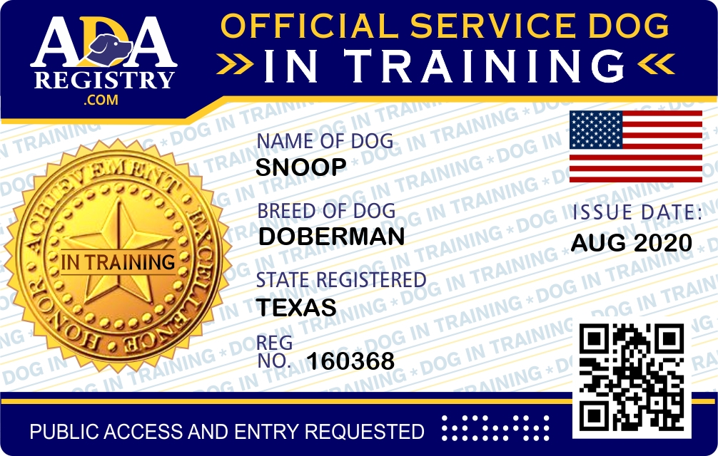 Service Dog In Training Registration for Snoop