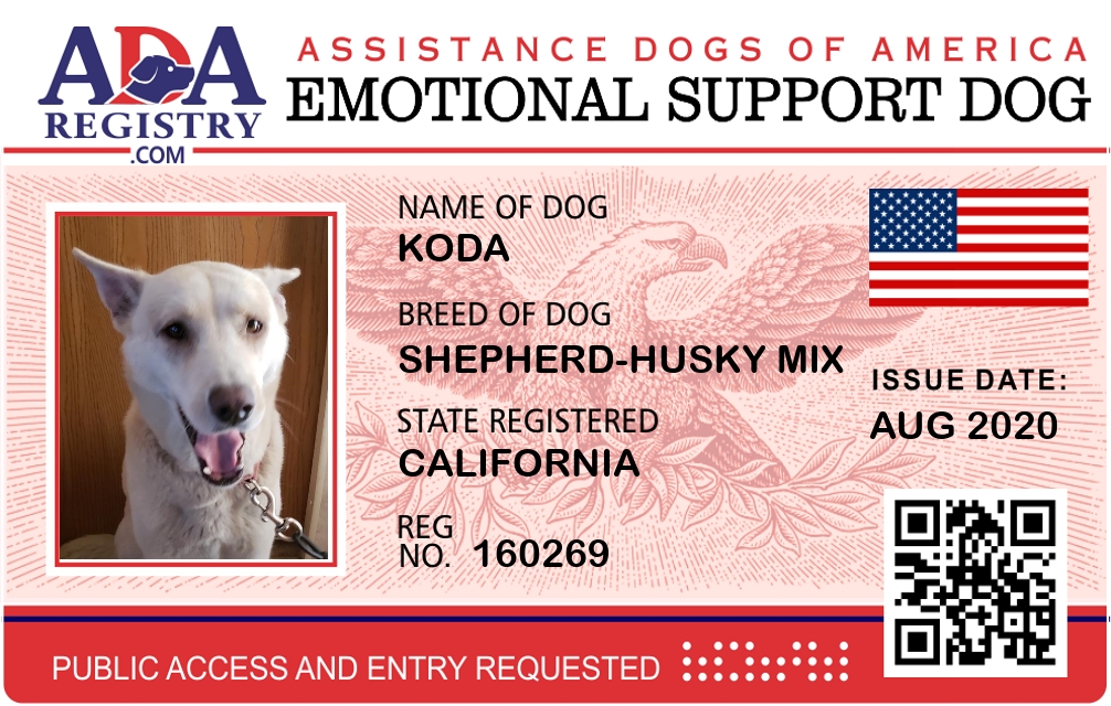 Emotional Support Dog Registration for Koda
