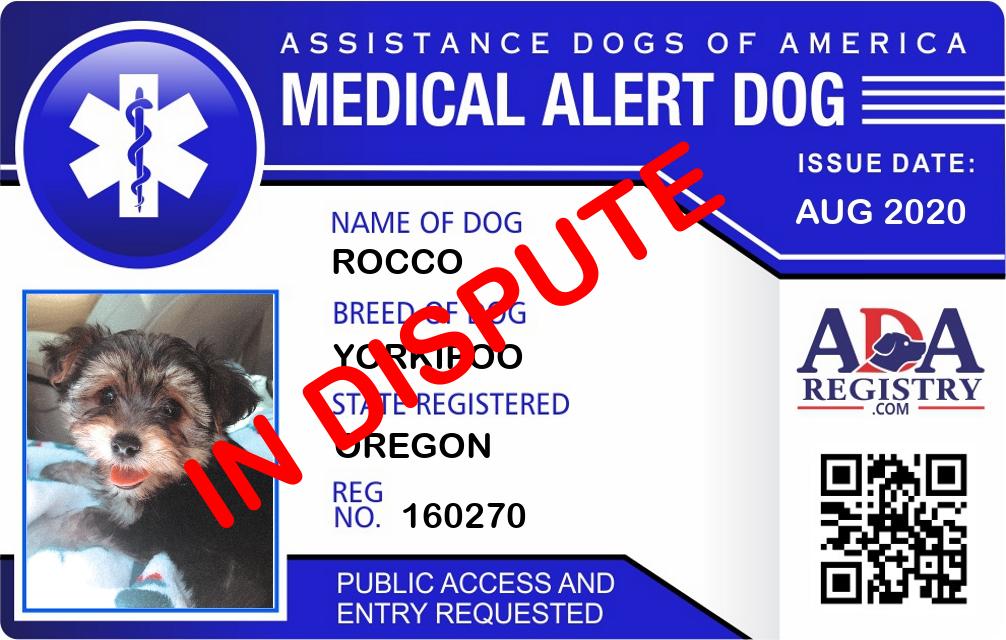 Medical Alert Dog Registration for Rocco